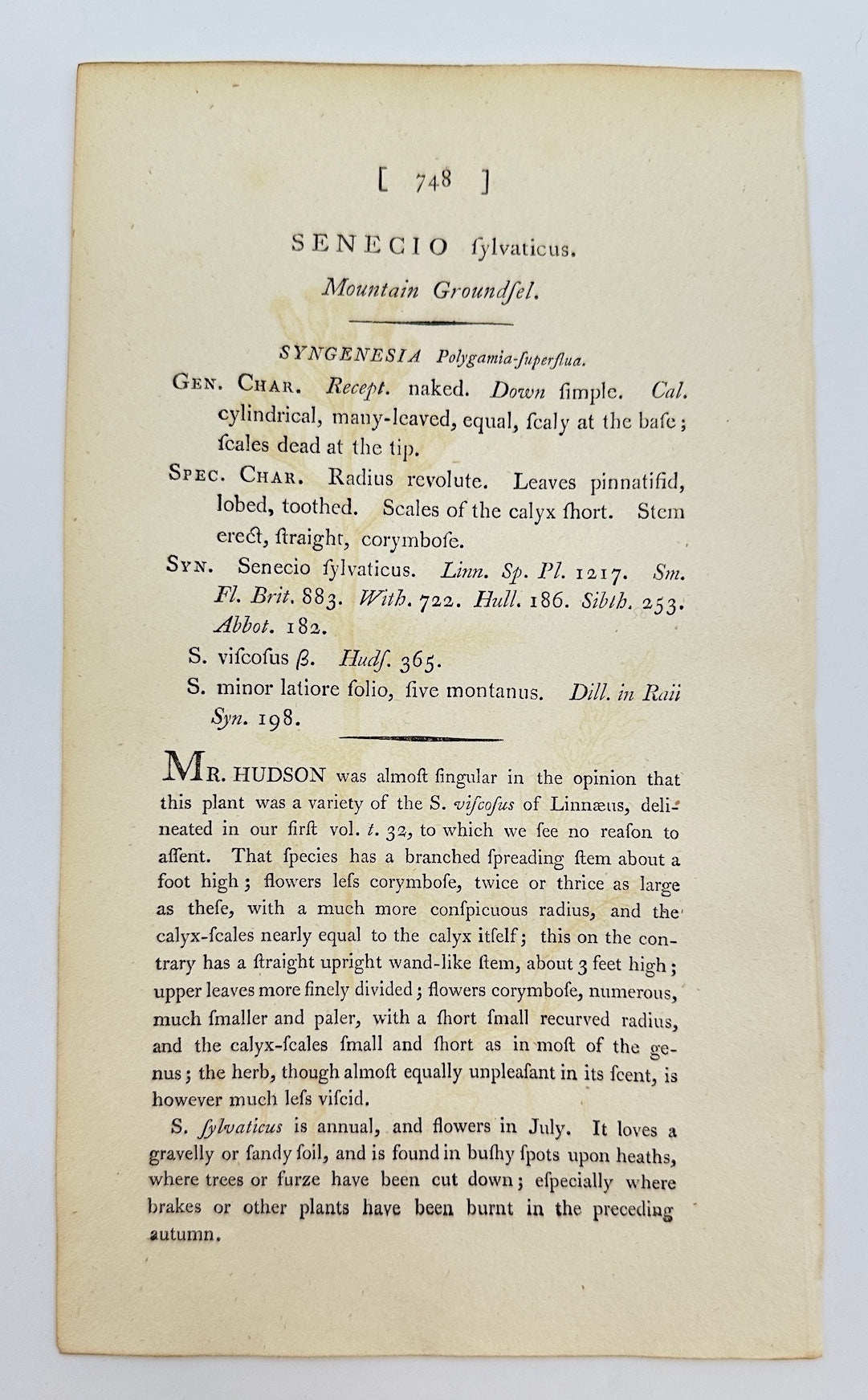 Antique Print - James Sowerby - Senecio Sylvaticus - Wood Groundsel - F1