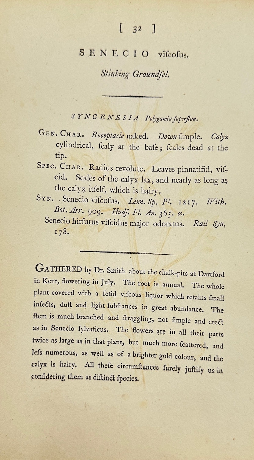 Antique Print - James Sowerby - Senecio Viscosus - Sticky Groundsel - F1