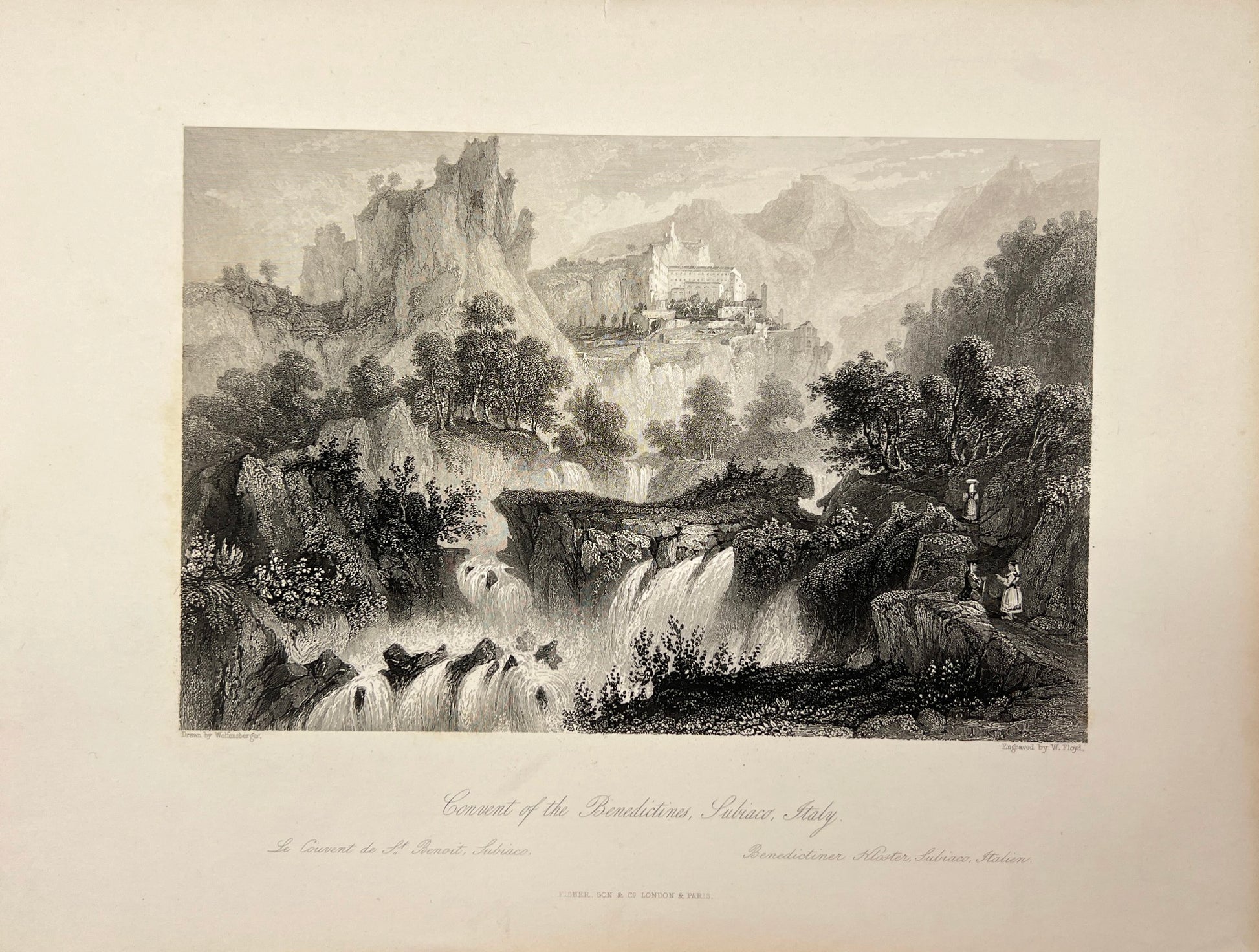 Antique Print - Meyer - View of Convent of the Benedictines in Italy - E5