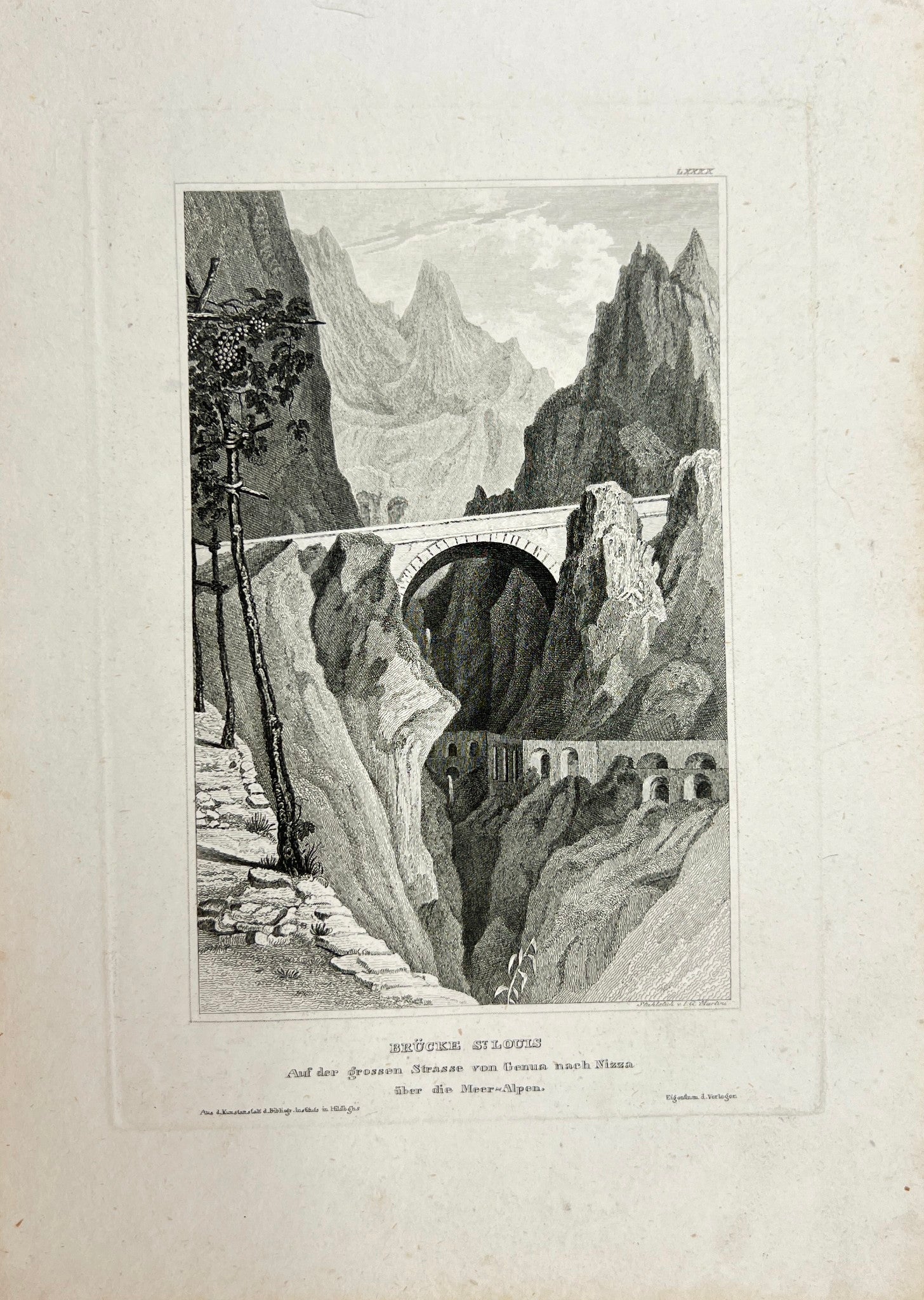 Antique Print - Reiss - Bridge Saint-Louis on the Road from Genoa to Nice - E5