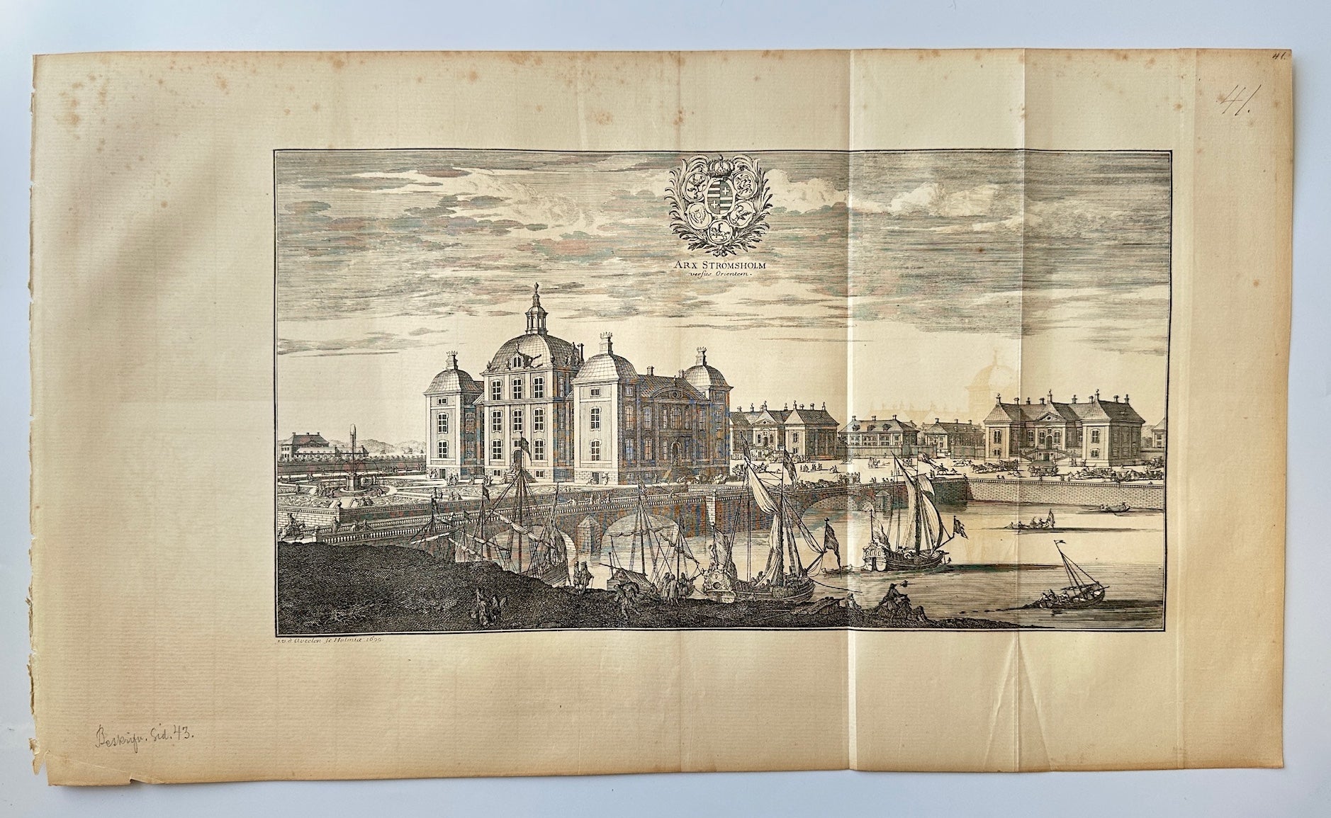 Antique Topographical - Erik Dahlberg - View of Stromsholm Castle in Sweden - E1