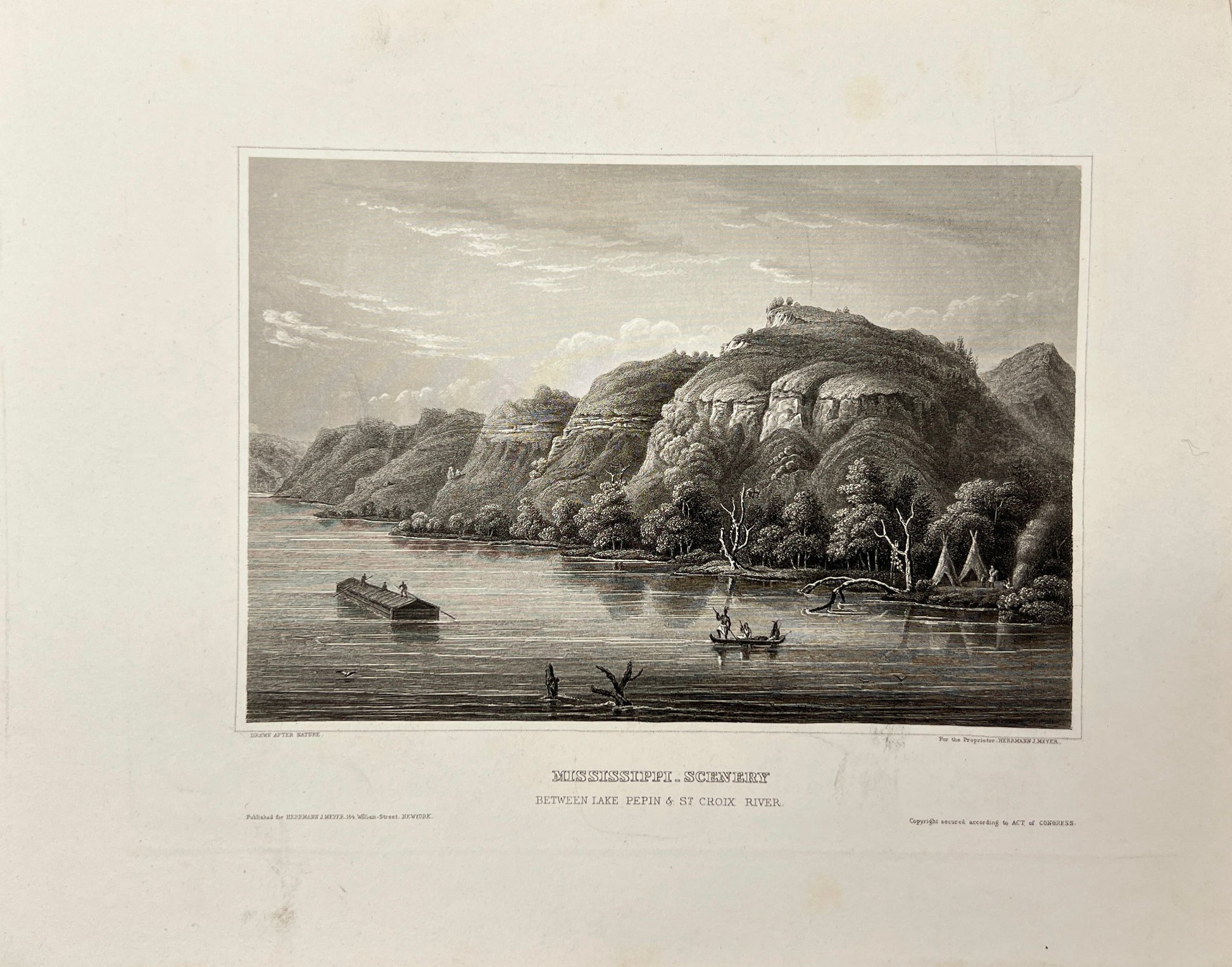 Original Antique Engraving - Carl Joseph Meyer - View of Mississippi - USA - E5