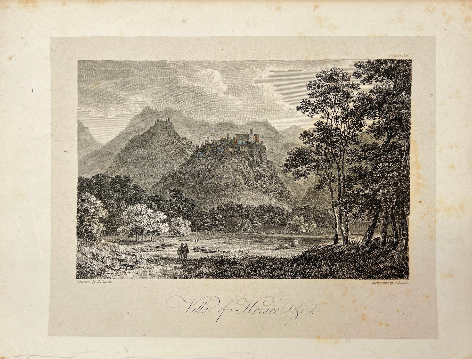 Original Antique Engraving - Carl Joseph Meyer - Villa of Horace - Rome - E5