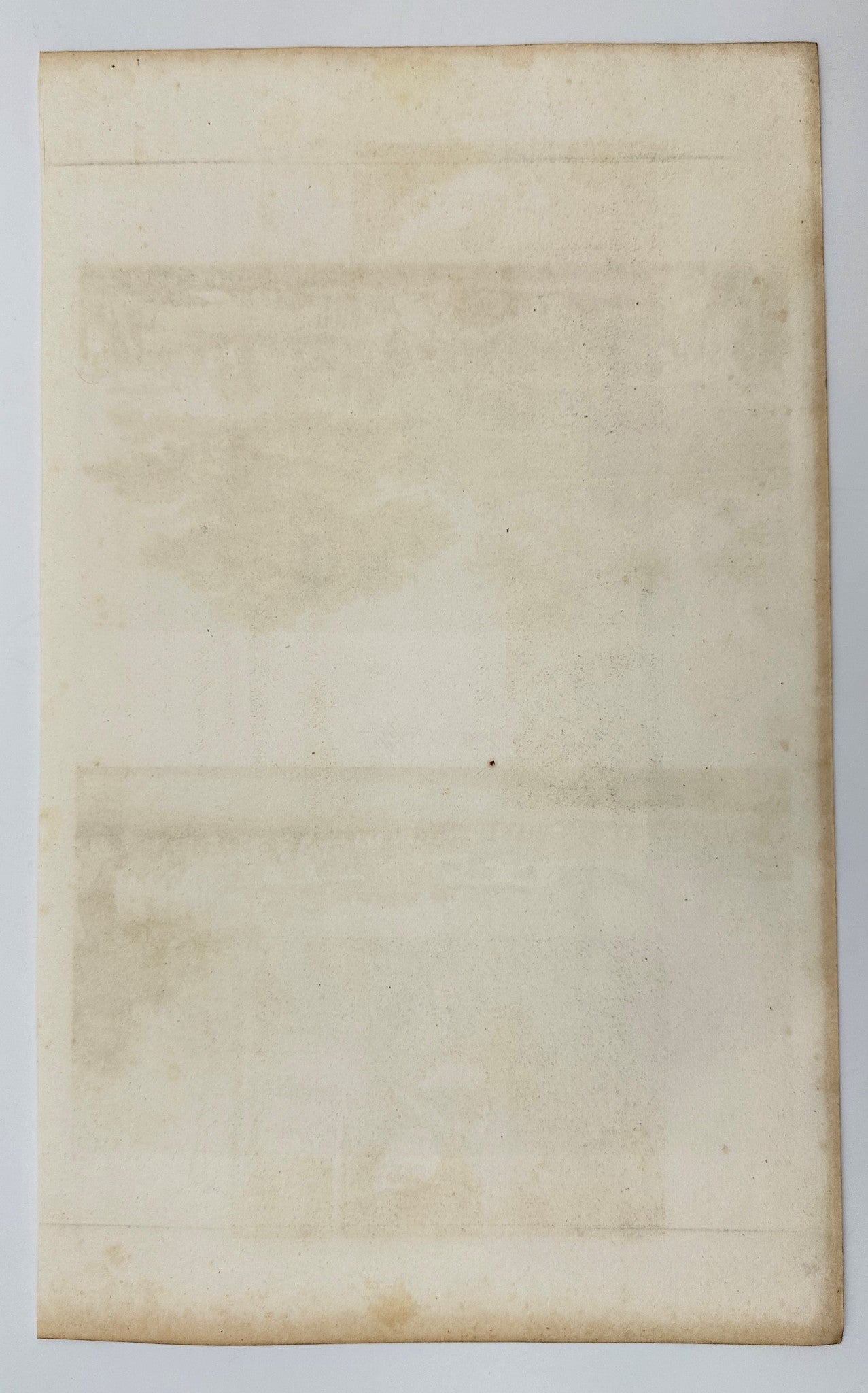 At [Napoleon] Bonaparte's invitation Denon eagerly accepted an opportunity to join the expedition to Egypt (1798), and while there accompanied General Louis Charles Antoine Desaix up and down the Nile in pursuit of Murad Bey, recording antiquities as he went. He returned to France with Napoleon in 1800, and within the space of two years produced his monumental Voyage dans la basse et la haute Egypte, which contained 141 of his illustrations" (Howgego). The remarkable plates which illustrate this work, each described in detail in the accompanying text, are of great importance to Egyptology as they illustrate for the first time many new discoveries. Denon accompanied Napoleon's expedition to Egypt, and the present series of plates are among the great artistic achievements of that monumental campaign.