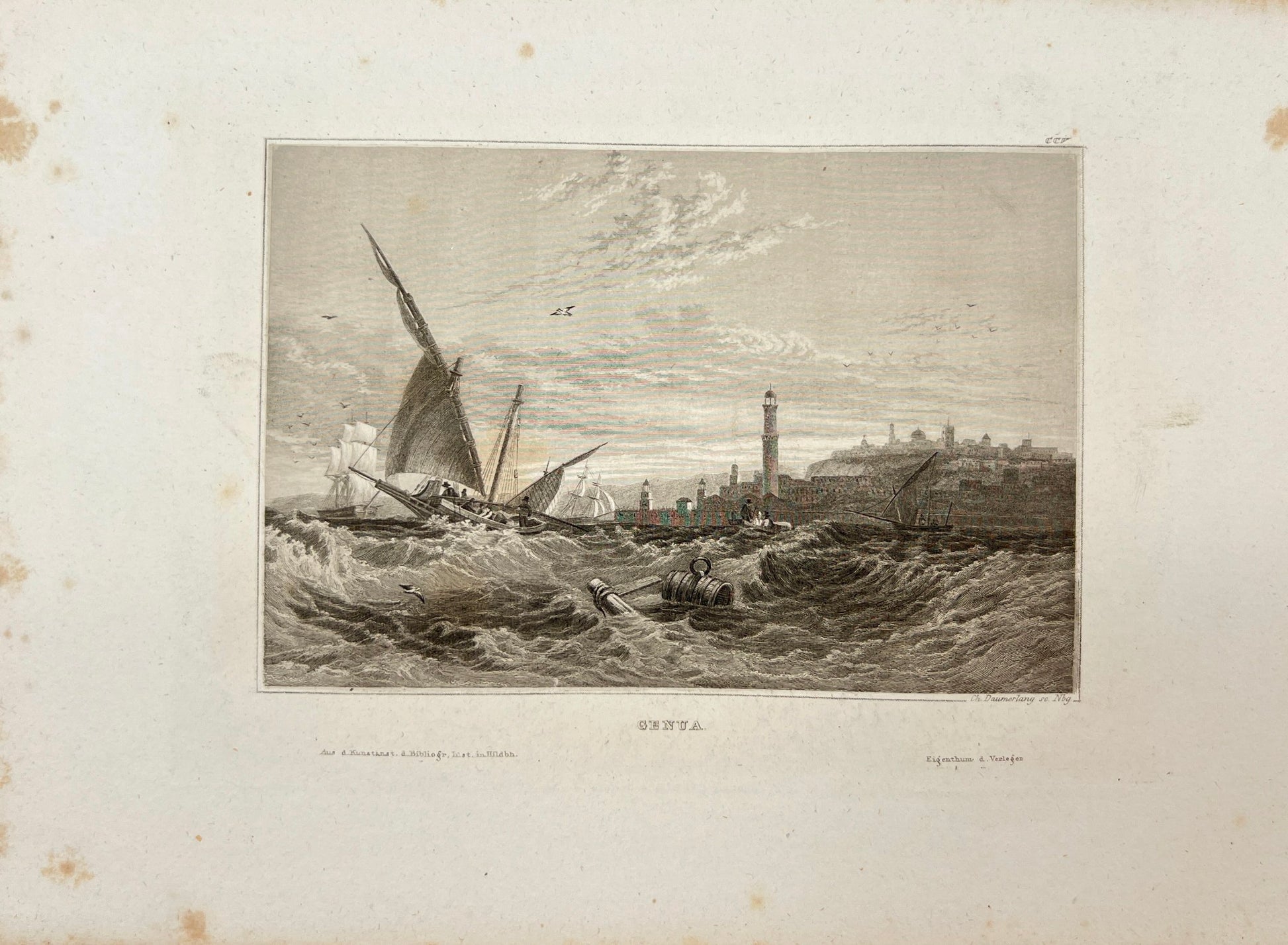 Original Antique Engraving - Karl Reiss - City of Genua - Italy - E5