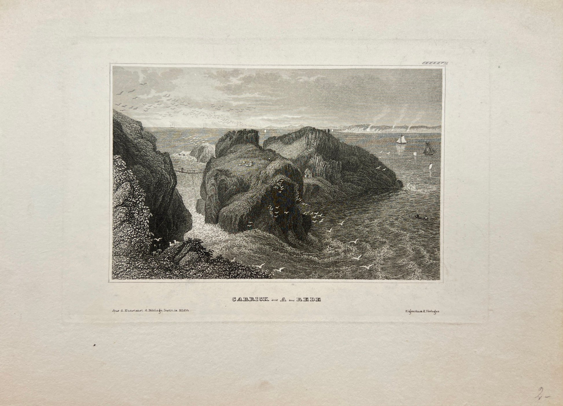 Original Antique Engraving - Karl Reiss - View of Carrick-A-Rede in Ireland - E5