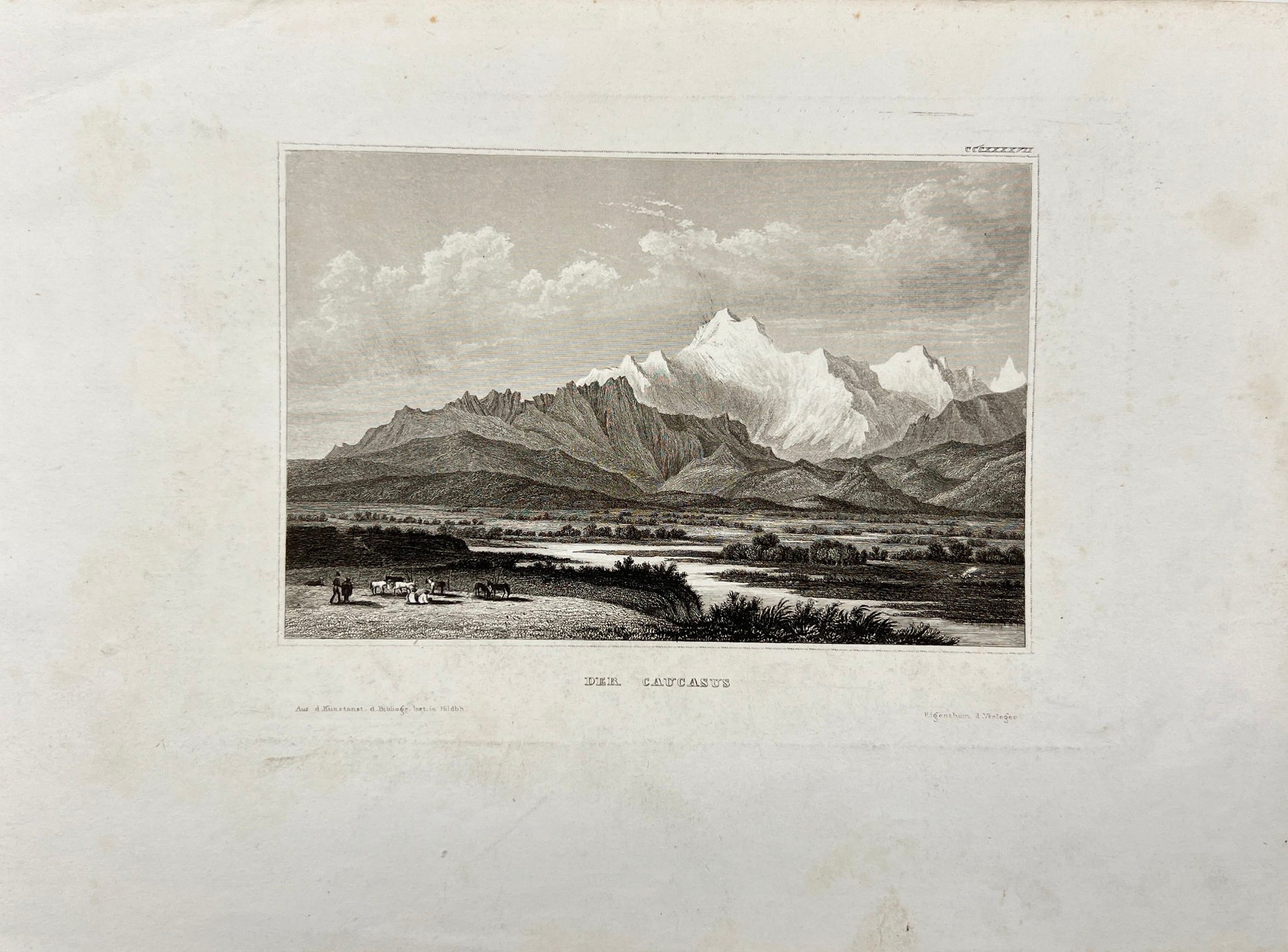 Original Antique Engraving - Karl Reiss - View of Caucasus Mountains - E5