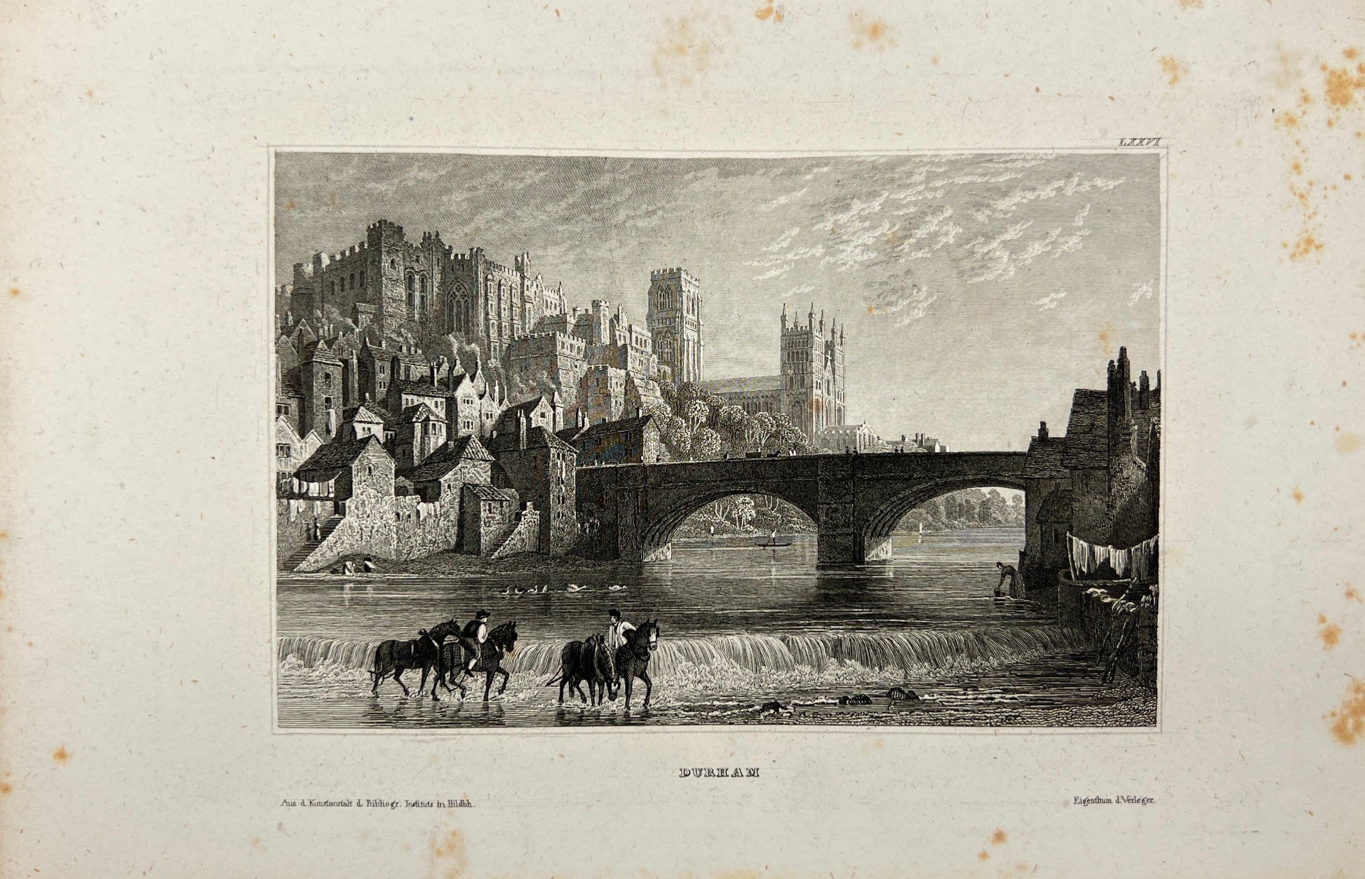 Original Antique Engraving - Karl Reiss - View of Durham - England - E5
