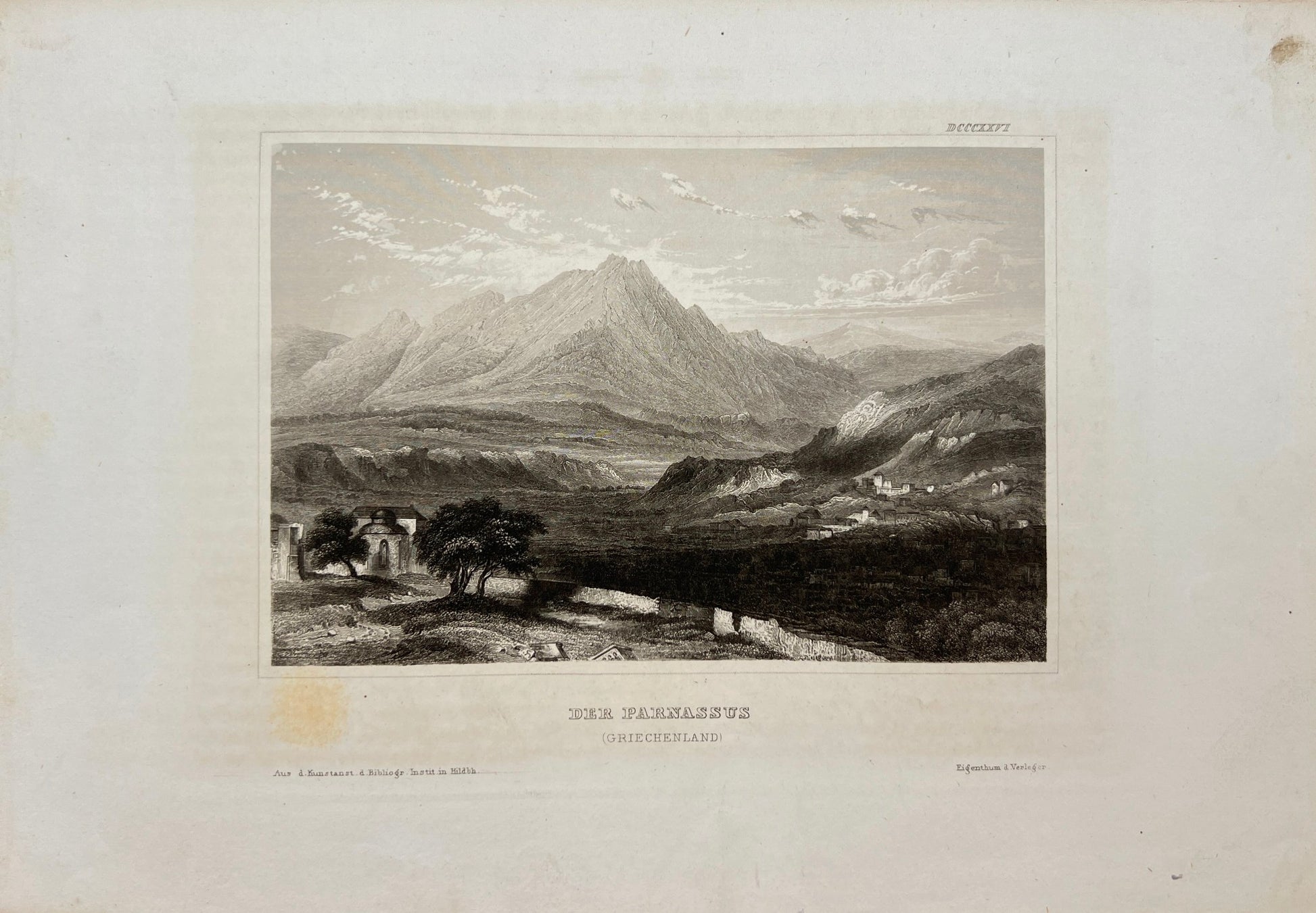 Original Antique Engraving - Karl Reiss - View Parnassus in Greece - E5