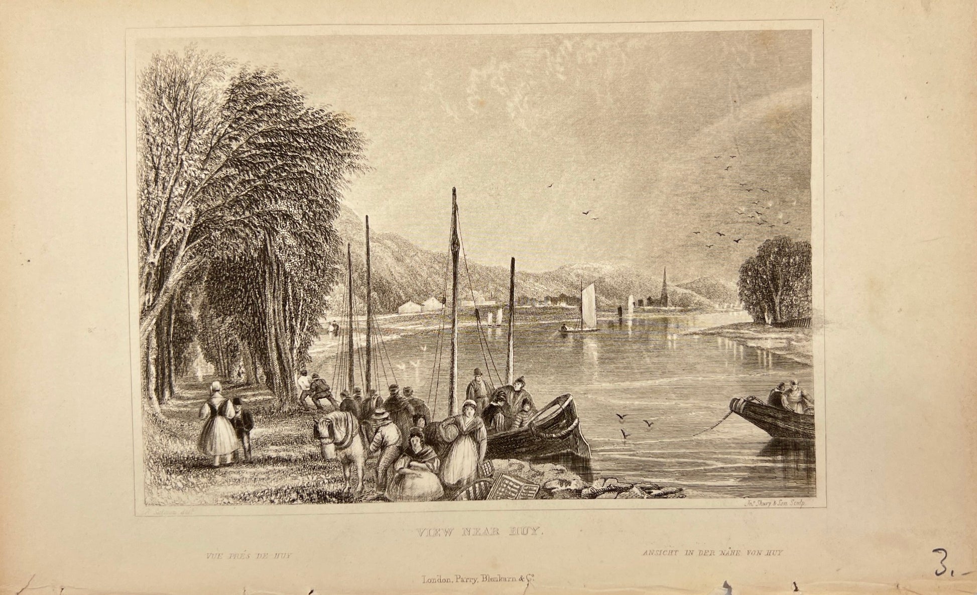 Original Antique Engraving - Shury & Son - View Near Huy - Belgium - E5