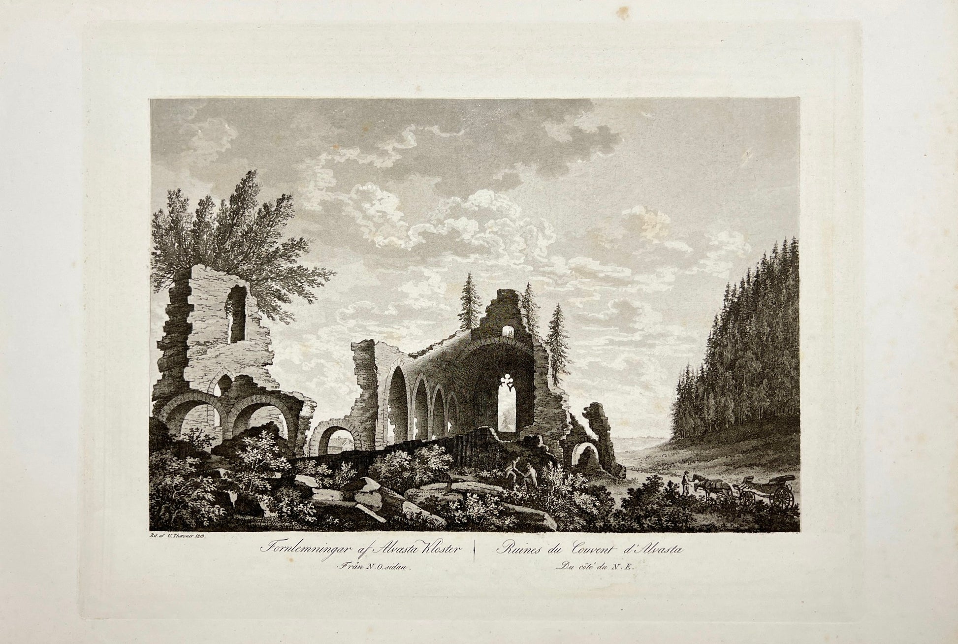 Original Antique Engraving - Ulrik Thersner - View of Alvastra in Sweden - E3