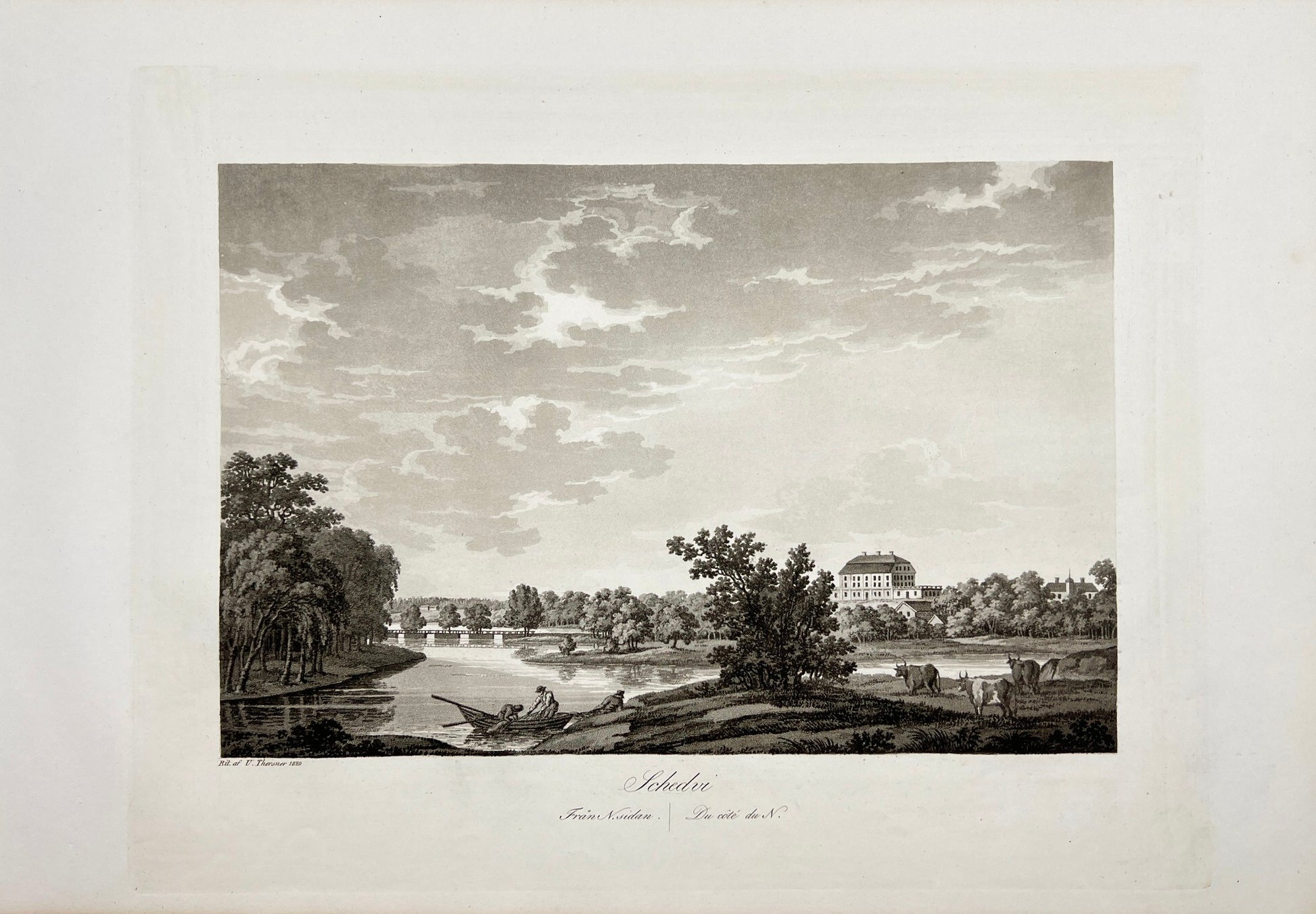 Original Antique Engraving - Ulrik Thersner - View of the Inn in Worlitz - E3