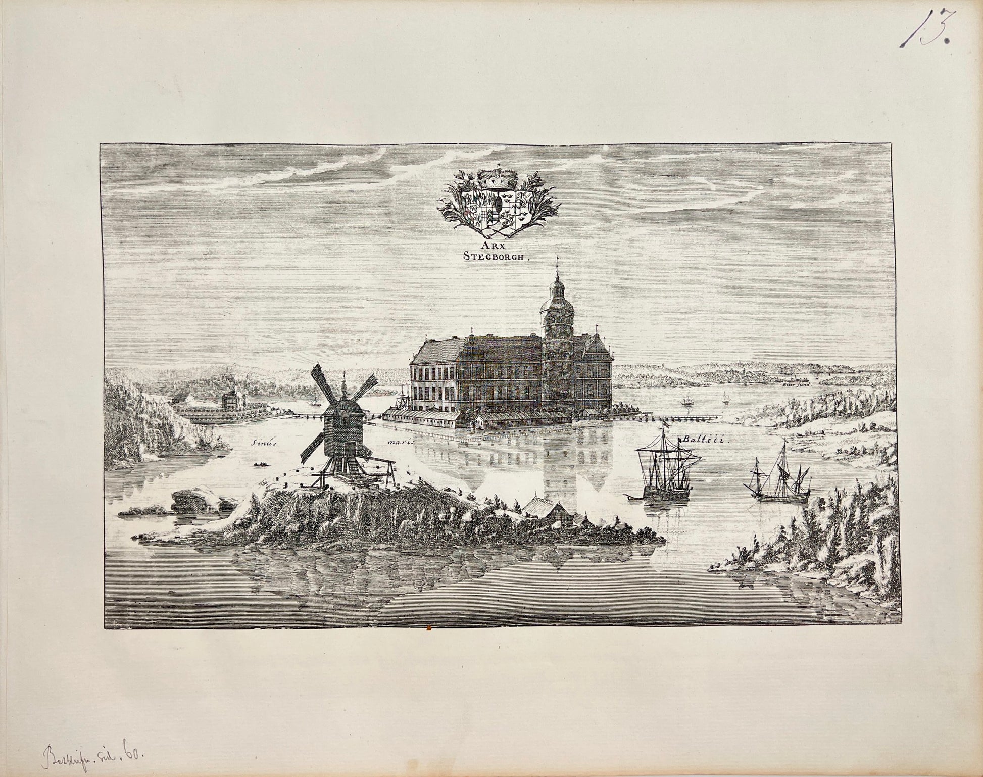 Original Antique Lithograph - Erik Dahlberg - View of Stegeborg Castle - E1