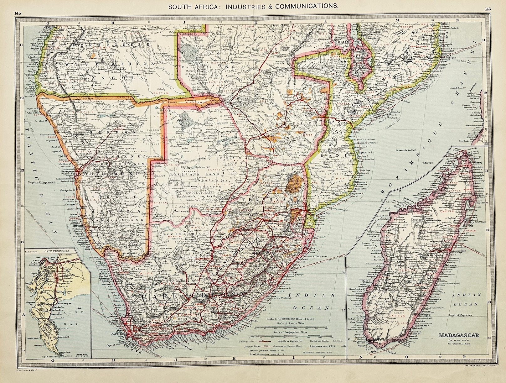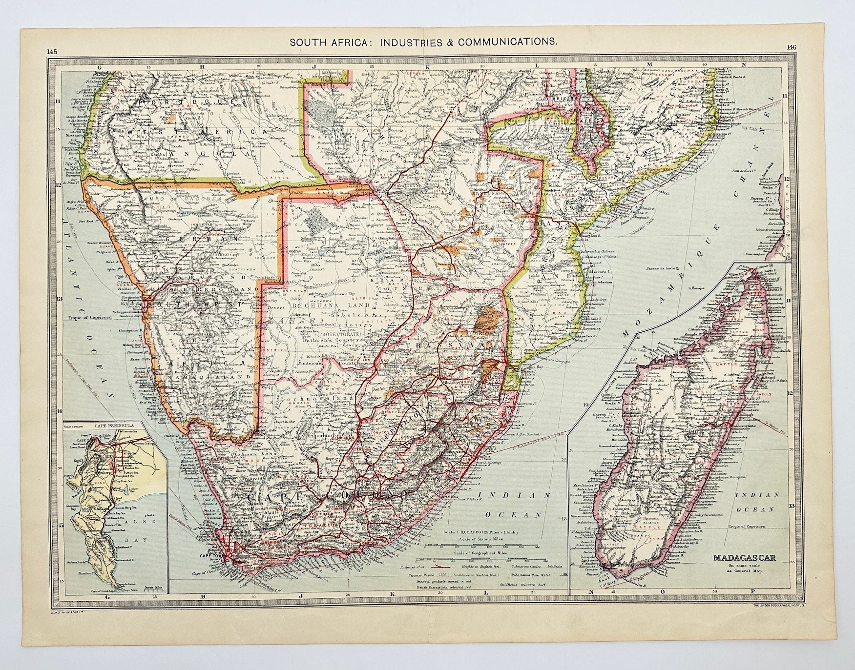 Original Antique Map - George Philip - South Africa - George Philip & Son - G3