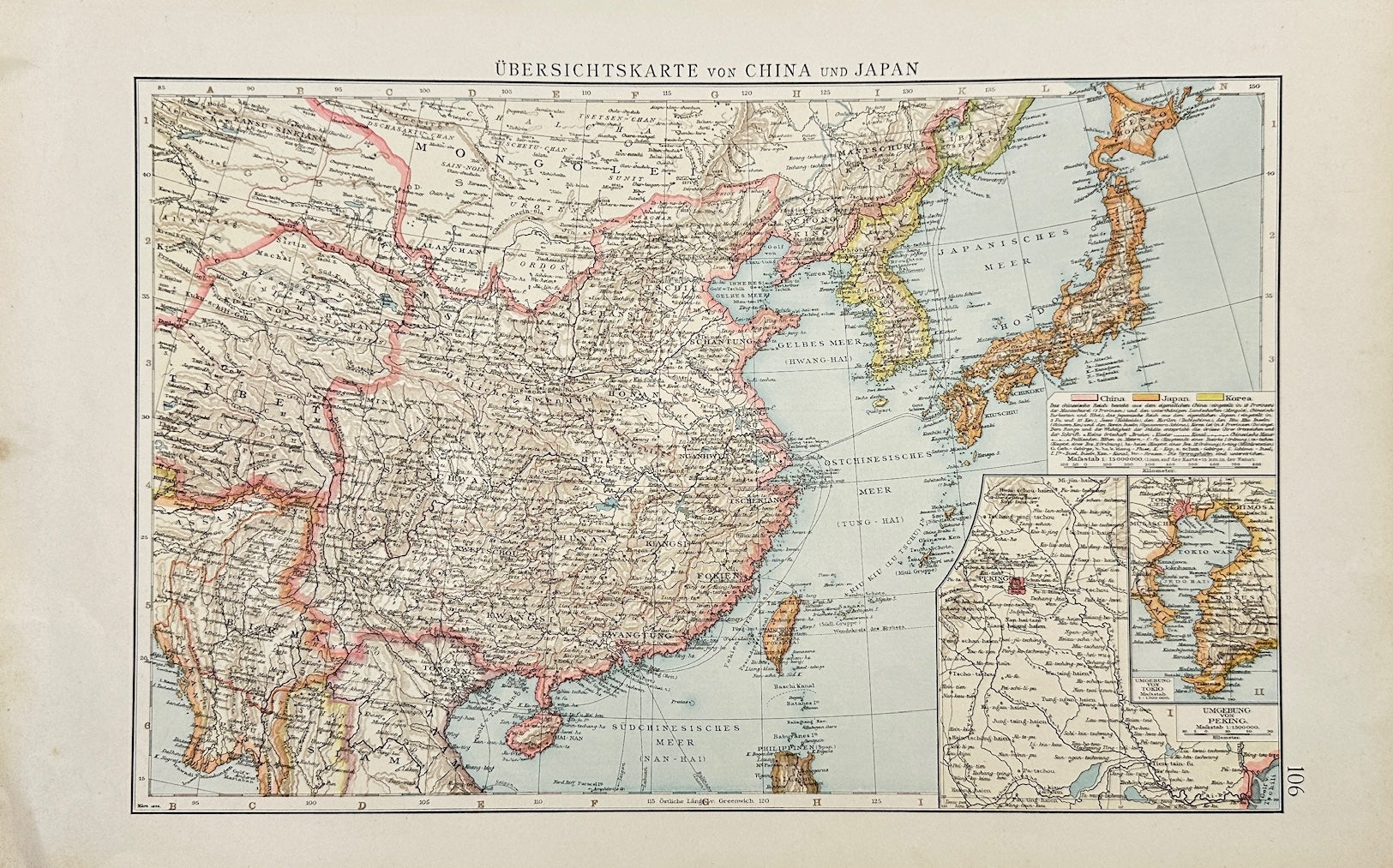 Original Antique Map - The Times Atlas - Overview Map for China and Japan - G3